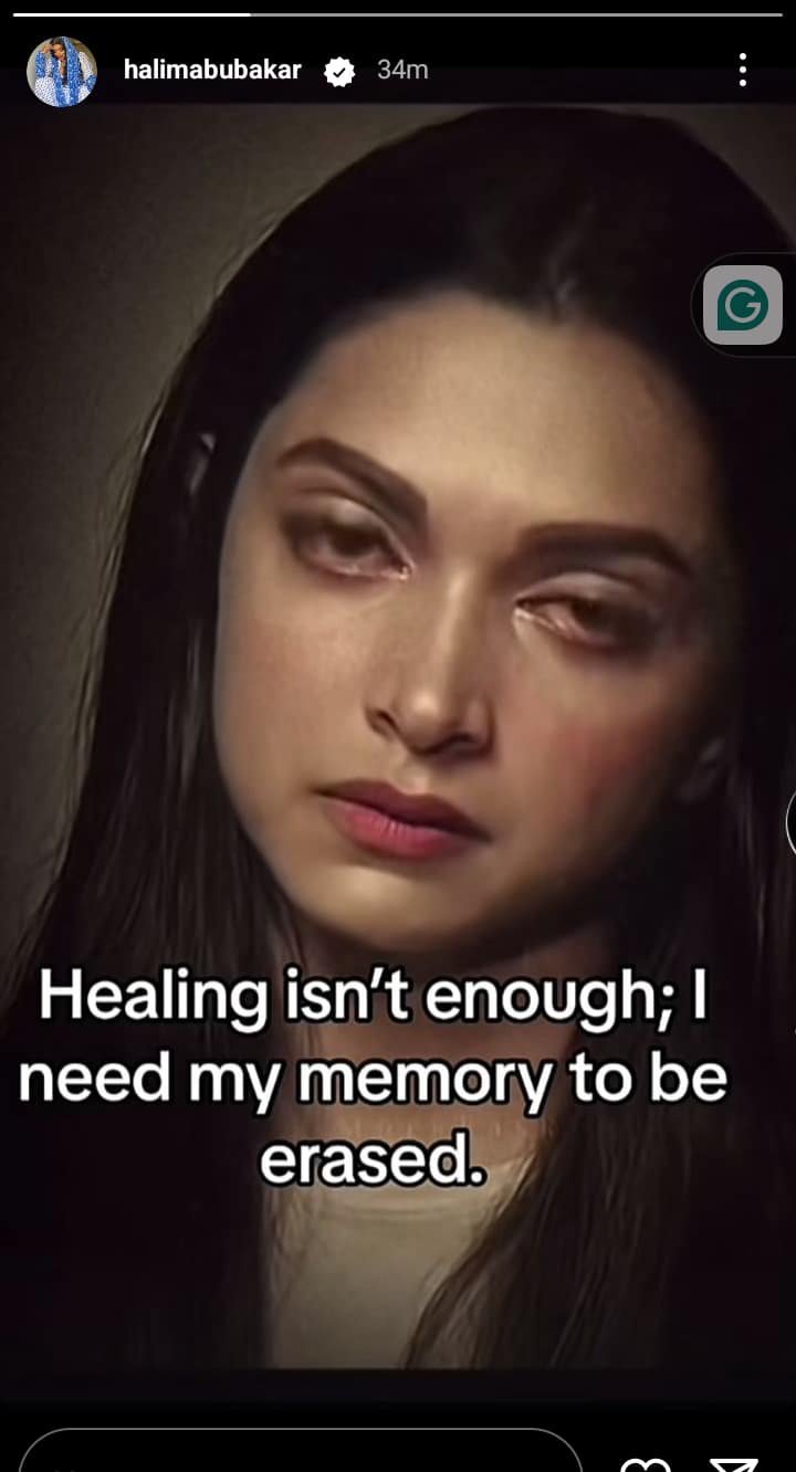 Taking to her Instagram story, Abubakar expressed frustration, saying that simply healing is no longer enough for her—she wishes her memory could be erased.