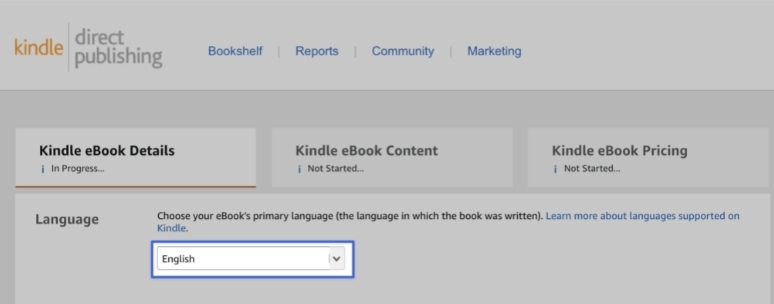 Choose your eBook’s primary language (the language in which the book was written).