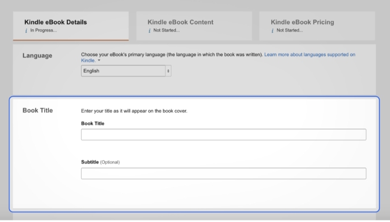 Your book title is critically important. It has to be magnetic and should grab the reader’s attention. Enter your book title and subtitle carefully.