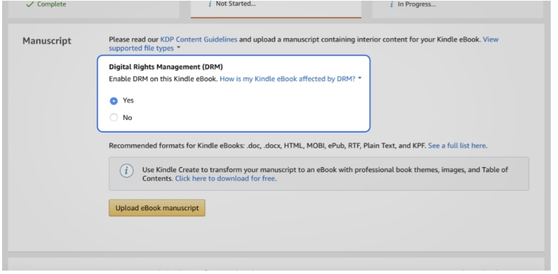 Despite the options provided (like pdf or doc files), turn your eBook into a well-formatted epub file before you upload it. Always use the current Kindle format so your book will look good in every e-reader.