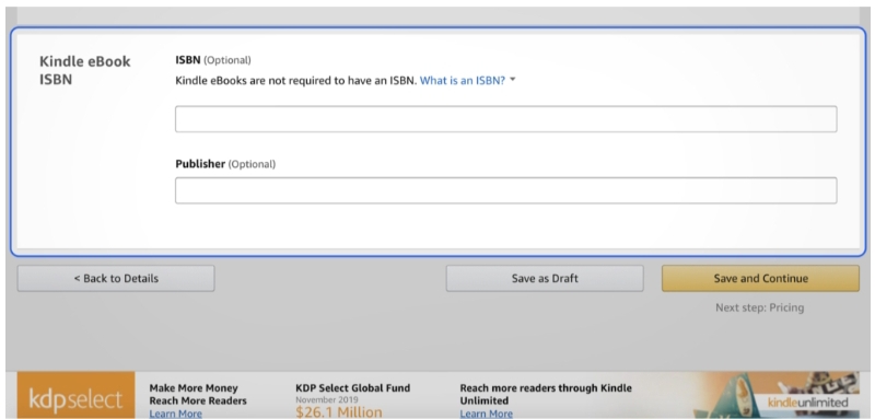 You do not need an ISBN or a publisher for a Kindle eBook. If you intend to publish only on Amazon, you can leave these fields blank. However, if you plan to publish your book on other platforms or in print, you will need an ISBN. It is also essential to have a publisher for your book if you plan to sell it in bookstores.