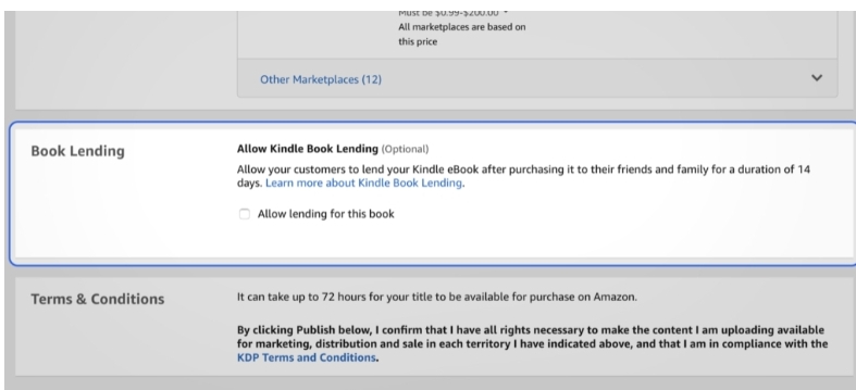 These options are up to you, but you’ll have to enroll in book lending if you want the 70% royalty.
