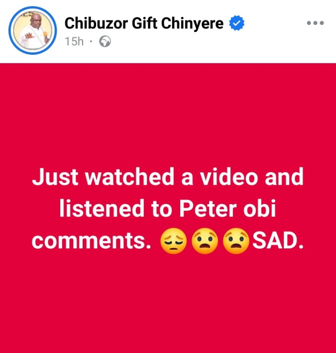 “Just watched a video and,listened to Peter obi,comments.,SAD.”