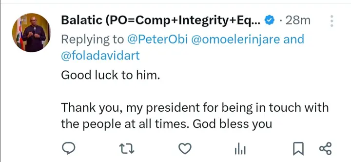 Peter Obi wrote this in a post on his verified Twitter page on Saturday morning.
