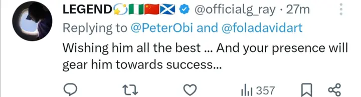Peter Obi congratulated him for taking this bold step and representing Nigeria on the global stage. Obi reiterated his commitment to a “New Nigeria” where more youths will become highly productive across all sectors.