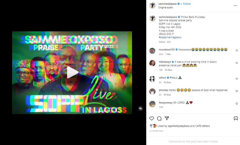 “Throw Back thursday. SOPP live in Lagos friday nov 4th 2022 it was a blast. JESUS DID IT” Sammie captioned the video shared on his Instagram page.