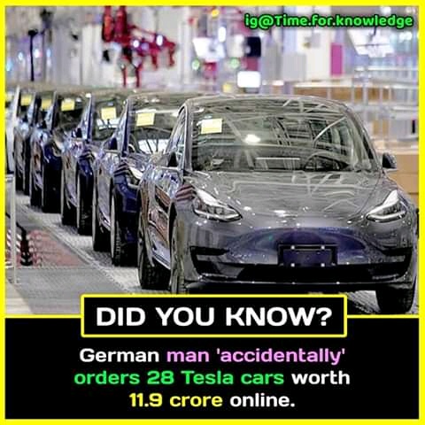 German man accidentally order 28 Tesla cars worth 11.9 crores online