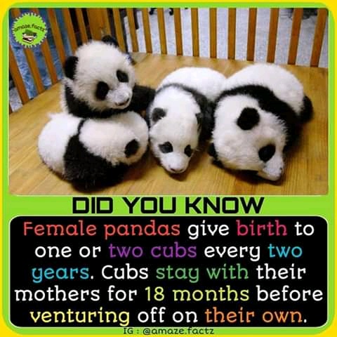 female pandas gives birth to one or two Cubs every two years cubs stay with their mother for 18 months before venturing off on their own