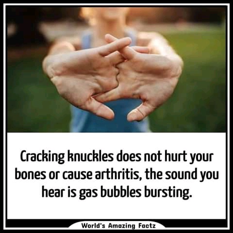 cracking knuckles does not hunt your bones or cause arthritis, the sound you hear is gas bubbles bursting