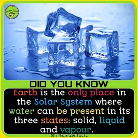 Earth is the only place where in the solar system where water can be present in three states: solid, liquid and vapor