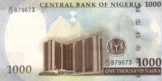 At the back of the note is the picture of CBN’s corporate Head Office in Abuja, Federal Capital Territory of Nigeria. As of 20 June 2016, the naira was allowed to float, after being marked at 197 to one US dollar for several months.